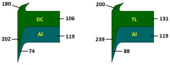 Material combinations: DC-Al, TL-Al. The shape and dimensions of the test specimens were the same as for the previous joints so that they could be compared with each other (Figure 4).