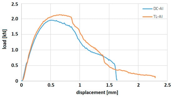 Figure 16 shows the load–displacement curves for the DC-Al and TL-Al joints formed by adhesive bonding with both adhesives, as joined and after the climate test (CT).