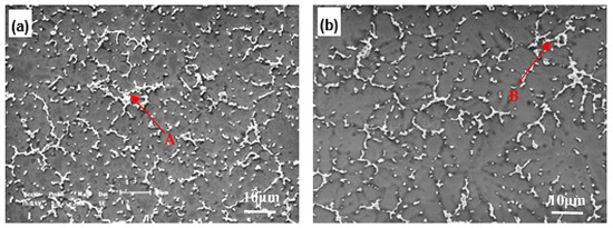 Table 1 presents the EDS results for the phase composition of points A and B.