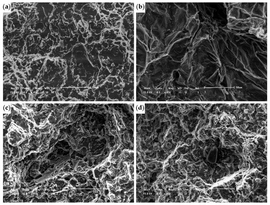 Figure 12. SEM pictures of the AZ80 alloy treated by different ultrasonic times: (a) 0 s; (b) 30 s; (c) 60 s; (d) 90 s.