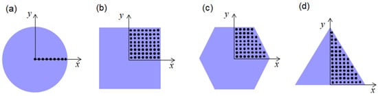 For square and hexagonal cross sections, it is sufficient to choose the source points in the first quadrant to obtain the average LEE and FFP. For triangular cross sections, it is necessary to simulate half the source points in the x-y plane.