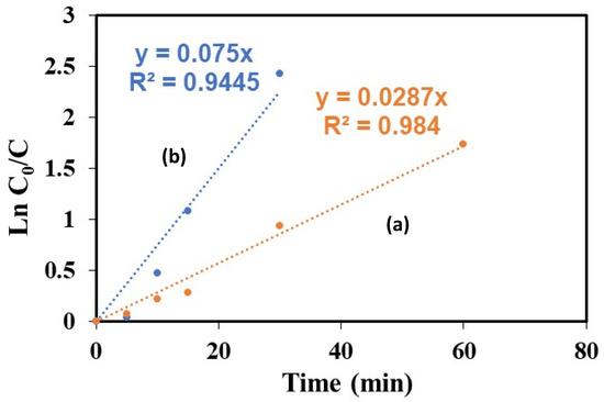 To analyze the catalytic results summarized in Figure 9, we have supposed that the rate of the reaction of AMX oxidation was of the first order, in which case it was changing with time and depended of the remaining AMX concentration in the solution. Using a kinetical constant that was labelled kapp for the apparent, v = kapp × [AMX]1residual was calculated: