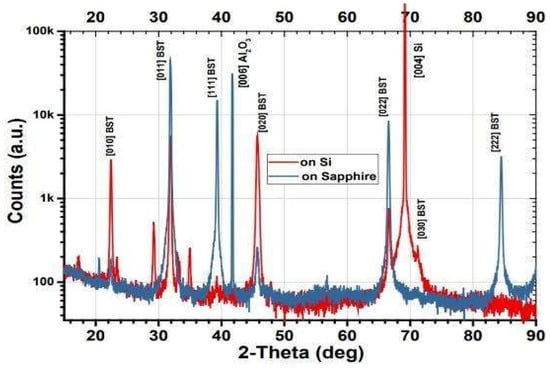 - Liu, M.; Ma, C.; Collins, G.; Liu, J.; Chen, C.; Alemayehu, A.D.; Subramanyam, G.; Ding, Y.; Chen, J.; Dai, C. Ferroelectric BaTiO3/SrTiO3 Multilayered Thin Films for Room-Temperature Tunable Microwave Elements. Nanoscale Res. Lett. 2013, 8, 338. [Google Scholar] [CrossRef]