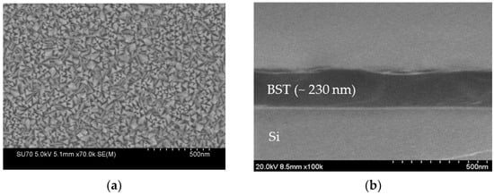 - Goud, J.P.; Kumar, A.; Alkathy, M.S.; Sandeep, K.; Raman, A.; Sahoo, B.; Ryu, J.; Raju, K.J. Thickness Dependence of Microwave Dielectric Tunability in Ba0.5Sr0.5TiO3 Thin Films Deposited by Pulsed Laser Deposition. Ceram. Int. 2023, 49, 1188–1194. [Google Scholar] [CrossRef]