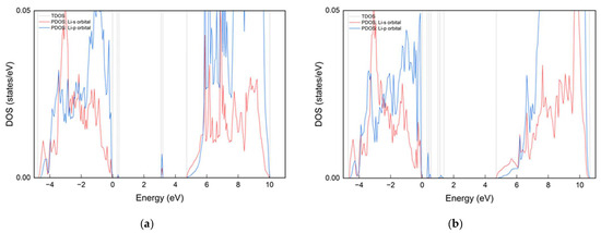 PDOS of co-dopant Li in RE, Li: MgO, RE = Nd or Er: (a) Nd, Li: MgO; (b) Er, Li: MgO.