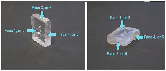 To compare the incorporation of Li, B, Na, Mg, S, K, Sr, and Ba into different crystallographic faces of calcite, experiments of calcite growth on the Iceland spar substrate were conducted in this study. Cleavage fragments of Iceland spar consist of three pairs of parallel and equally sized faces (1 and 2, 4 and 5, 3 and 6) (Figure 1). The values of (E/Ca)calcite were determined in the newly grown thin layers of calcite that formed on each of the aforementioned faces with the LA-ICP-MS depth profiling technique.