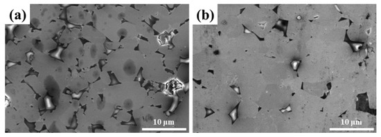 ) was calculated according to Formula (1). The samples’ hardness was tested using a Vickers hardness tester (HMAS-010, Yan Run, Shanghai, China) on a grinding and polishing machine (MP-2B, Wei Yi, Laizhou, China) after polishing. The density of the ceramic was ascertained using the Archimedes method, with deionized water as the liquid medium, at room temperature. The theoretical density of LaB