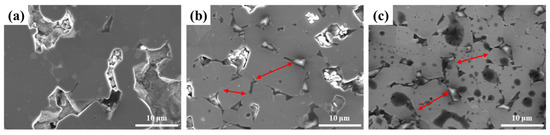 Figure 1c,d show fewer pores at trident grain boundaries. However, for particle sizes as small as 2.496 μm, the cross-section reveals numerous air holes between unsintered agglomerates. The changes in the number of pores in the sections are in line with the changes in relative density shown in