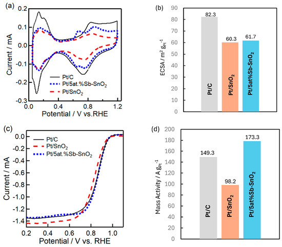 2.6. Electrochemical Characterization of Pt/SnO2 and Pt/Sb-SnO2