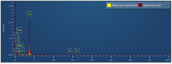 Despite the fact that the concentrations of a given element could be different, depending on the environmental conditions in which the animal lived, all these elements, with the only exception of strontium and magnesium, and in particular the heavy metals, were present in rather low concentrations, and this is very important for a possible use of these shells for industrial applications. Heavy metals incorporated into the shell can provide a record of environmental contamination or pollution. Strontium and magnesium, due to their characteristics and chemical similarity, can replace calcium in calcium carbonate, so it should not be surprising that these elements have a higher concentration than the others. It is worth remembering that natural mineral dolomite is a solid solution of calcium and magnesium carbonates, with an ideal ratio between them equal to 1:1 [31].