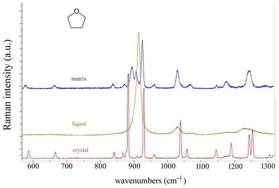 Mohaček-Grošev, V. Low Temperature Raman Spectroscopy of Tetrahydrofuran: Phonon Spectra Compared to Matrix Isolation Spectra in Air. Crystals 2024, 14, 468. https://doi.org/10.3390/cryst14050468