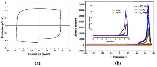(a) Electric hysteresis loop of 6R at r.t. for single crystal sample. (b) Temperature dependence of the dielectric constant of 6R at various frequencies. Inset: dielectric constant at high frequencies [35]. Copyright © 2014 Elsevier B.V. All rights reserved.