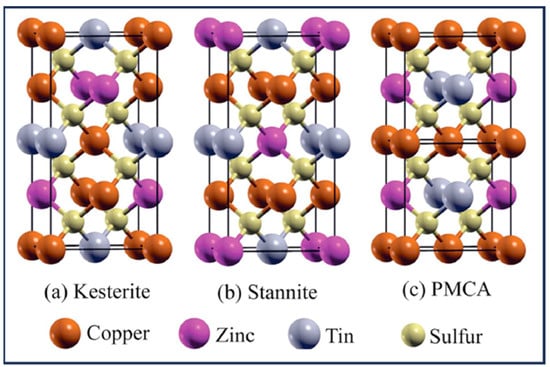 CZTS crystal structures of kesterite, stannite, and PMCA. Adapted from [].