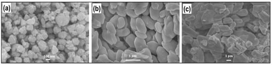 SEM images of the surface of Cu2ZnSn(SxSe1−x)4, (a) x = 1, (b) x = 0.0, and (c) x = 0.4. Adapted from [].