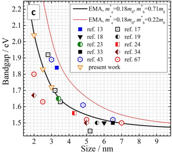 CZTS/Se nanoparticles have been explored to fabricate the absorber layer in thin film PV with high quality and purity toward high-performance PV devices. In addition, nanoscale CZTS/Se with other morphologies, including two-dimensional (2D) nanosheets, one-dimensional (1D) nanostructures, and quantum dots (QDs), have been recently explored for both PV and other applications. QDs which are defined as nanocrystals with diameters less than or equal to the exciton Bohr radius (EBR) of the corresponding bulk material, exhibit quantum confinement, which restricts the motion of the charge carriers causing the semiconductors to behave differently than its bulk counterparts [,,,]. One-dimensional (1D) nanomaterials such as nanotubes, nanowires, and nanorods offer unidirectional charge transport and scattering properties, which can improve the PCE of the solar cells by enhancing photon absorption, electron mobility, and electron collection. QD solar cells can provide several benefits, such as enhanced charge generation, charge separation, and charge extraction within the single material [,].