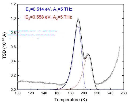 - Capelletti, R. Thermally Stimulated Depolarization Studies of Ionic Solids. In Defects in Solids: Modern Techniques; Chadwick, A.V., Terenzi, M., Eds.; Springer: Boston, MA, USA, 1986; pp. 407–431. [Google Scholar] [CrossRef]