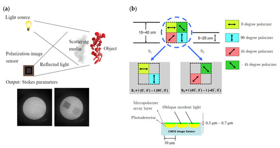 Color online. Polarimetry image sensors for a simultaneous detection of the Stokes parameters of output optical image including “invisible objects” (grayscale transmission/reflection images) with high resolution.