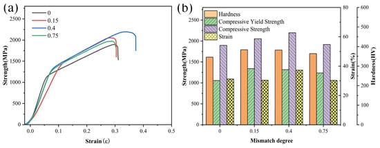 (a) Engineering stress–strain curves of GNF(Ni)/TC4 composites manufactured with the different mismatches; (b) mechanical properties of GNF(Ni)/TC4 composites manufactured with the different mismatches.