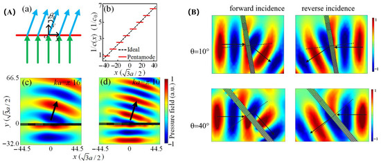 - Chu, Y.; Wang, Z.; Xu, Z. Broadband High-Efficiency Controllable Asymmetric Propagation by Pentamode Acoustic Metasurface. Phys. Lett. A 2020, 384, 126230. [Google Scholar] [CrossRef]