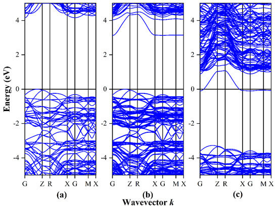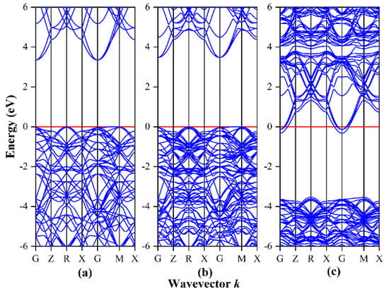 Energy band diagrams of (a) β-Si3N4, (b) C@β-Si3N4, and (c) O@β-Si3N4.