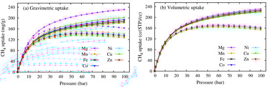 Among sorbents, metal–organic frameworks (MOFs) have received significant attention for CH4 storage because they exhibit several prominent properties for CH4 adsorption, e.g., high thermal and physical stability, changeable porosity, adjustable organic functionality, structural flexibility, and high-pressure resistance, etc. [,,,]. MOFs have been of interest in energy storage, especially methane storage, because of their significant enhancement of the volumetric density of methane [].