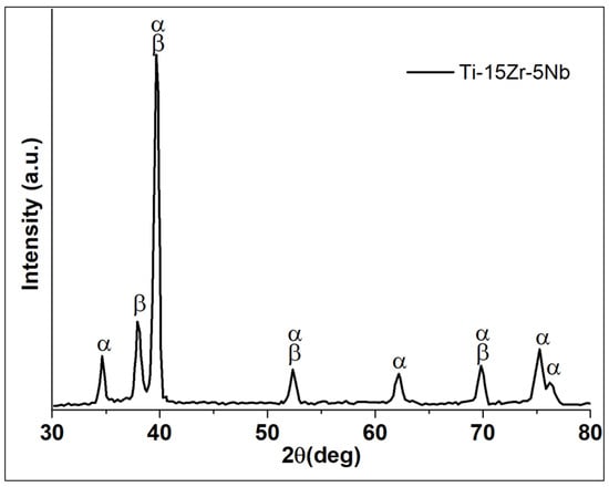XRD diffraction pattern for the Ti-15Zr-5Nb alloy.