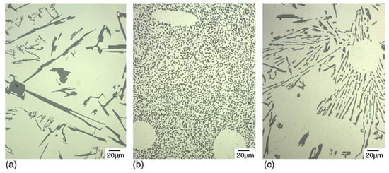 - Dahle, A.K.; Nogita, K.; McDonald, S.D.; Dinnis, C.; Lu, L. Eutectic modification and microstructure development in Al–Si Alloys. Mater. Sci. Eng. A 2005, 413, 243–248. [Google Scholar] [CrossRef]