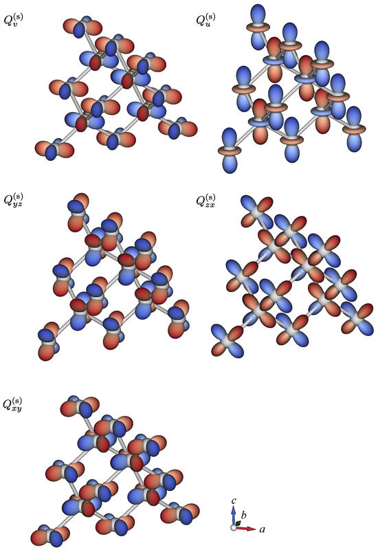 - Hayami, S.; Kusunose, H. Microscopic Description of Electric and Magnetic Toroidal Multipoles in Hybrid Orbitals. J. Phys. Soc. Jpn. 2018, 87, 033709. [Google Scholar] [CrossRef]