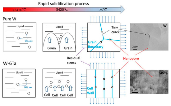 - Li, K.; Ma, G.; Xing, L.; Wang, Y.; Yu, C.; Chen, J.; Ma, J.; Wu, G.; Liu, W.; Shen, Z.; et al. Crack suppression via in-situ oxidation in additively manufactured W-Ta alloy. Mater. Lett. 2020, 263, 127212. [Google Scholar] [CrossRef]