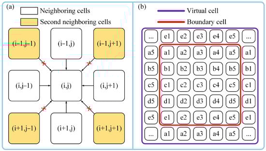 CA model settings: (a) neighbor type; (b) boundary condition.