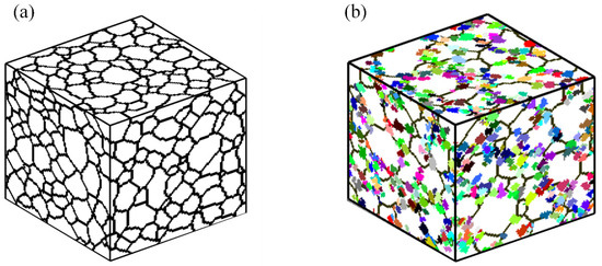 Three-dimensional model: (a) initial microstructure model; (b) DRX model.