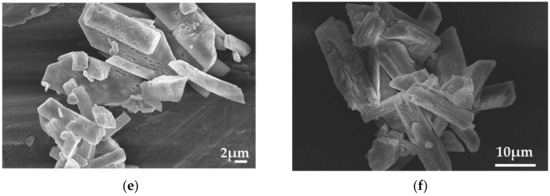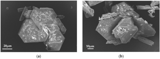The morphology of the precipitated solid was characteristic of struvite with the crystallites size ranging from 10 to 20 μm, as shown in the SEM pictures in Figure 13.