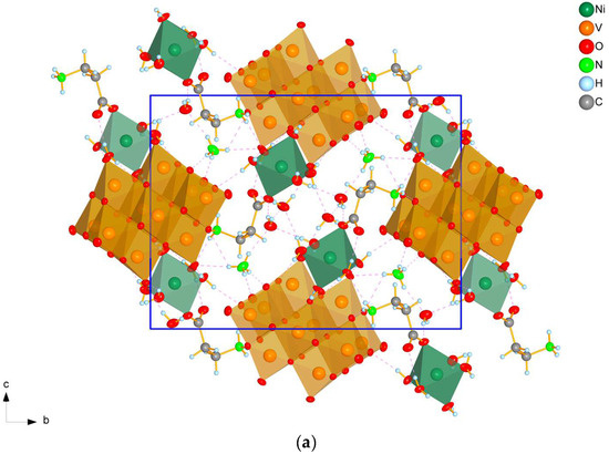 The oxovanadates (V), including decavanadates and peroxovanadium compounds, are of great interest in bioinorganic chemistry and biochemistry because of their antidiabetic, antibacterial, antiprotozoal, antiviral, and anticancer properties [10,11]. Studying of non-covalent interactions based on electrostatic attractive forces between decavanadate anion and appropriate molecules (organic cations, hybrid inorganic–organic complex cations, and biomacromolecules) could provide important information on the cooperative effects of decavanadate ions in biological systems [12,13,14].