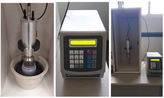As it can be seen in Figure 5, The probe used was 19 mm (3/4″), following the manufacturer’s recommendation based on the volume of mixture to be sonicated. The sonicator was placed in a soundproof box within a climate-controlled room, maintaining a temperature of 24 °C ± 2 °C. Additionally, the sonication container was placed inside another container with water to mitigate any abrupt temperature changes during sonication. Sonication was performed prior to starting the paste fabrication process. Once the aqueous solution with graphene oxide was sonicated, fabrication proceeded.