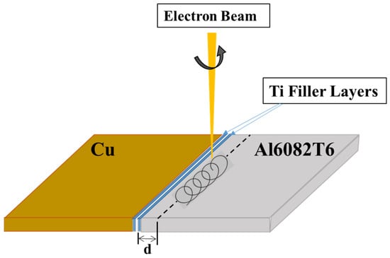 Scheme of the EBW of Cu and Al6082T6 with titanium filler.