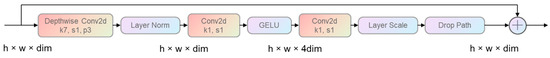 In this paper, modifications have been made to the structure of the ConvNeXt block to improve its effectiveness in classifying the quality of protein crystals. The original ConvNeXt block utilizes an inverted bottleneck structure, where the number of channels increases and then decreases to prevent information loss caused by compressed dimensionality. To reduce computational complexity, the depth-wise convolution layer has been relocated to the beginning. Furthermore, the activation function has been replaced with GELU instead of ReLU, and the normalization process has been substituted with Layer Norm rather than Batch Norm to mitigate any negative impact on network performance. The structure of the modified ConvNeXt block is shown in Figure 5.