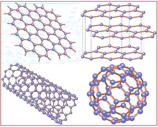 Basic structure of graphene, zero-dimensional fullerenes, one-dimensional CNT & 3D graphite, Copyright: [67].