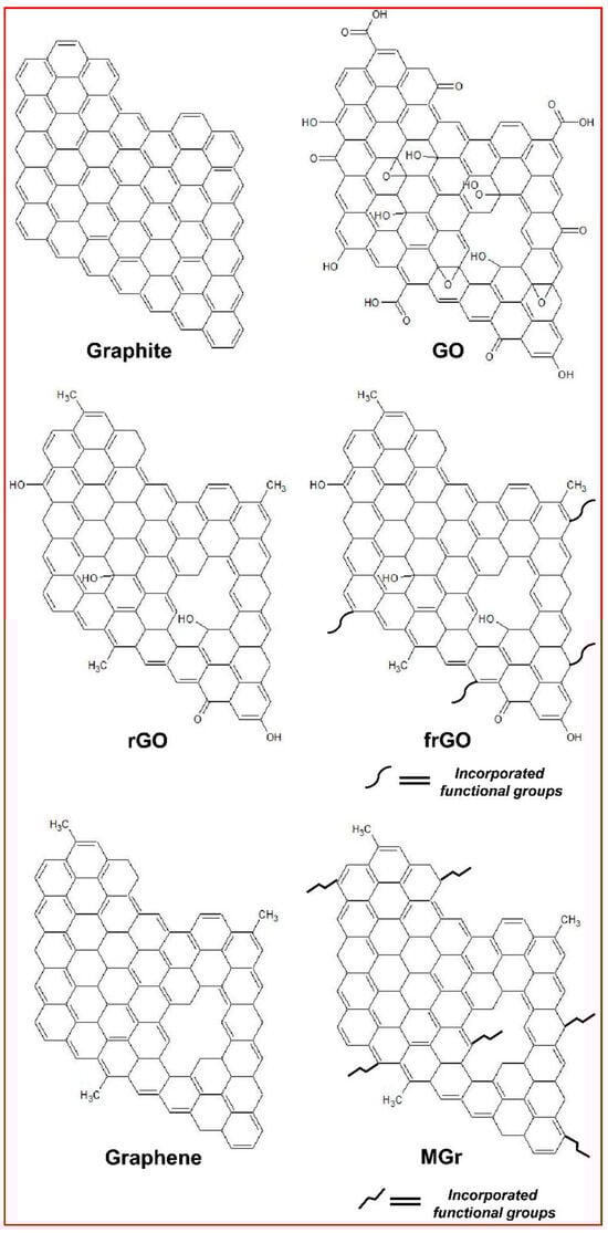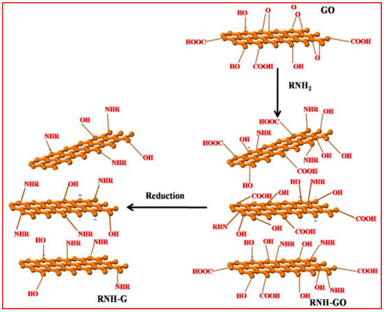 Functionalization is a process of doping new functional groups by physical or chemical means onto the structure of graphene derivatives (Figure 3 and Figure 4). This can be obtained by surface modification. The mechanism of functionalization is shown in Figure 3.