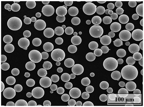 Inconel 718 alloy samples (In718 samples) were produced using In718 alloy powder with a particle size ranging from 15 µm to 45 µm, exhibiting a spherical morphology, by the SLM Enavision 120 machine (Ermaksan, Turkey). The chemical composition and morphology of the powders are given in Table 1 and Figure 1, respectively. The samples are rectangular with dimensions of 10 mm × 10 mm × 30 mm. The samples were produced with a Z-axis orientation using 350 W laser power and a scanning speed of 745 mm/s. The final linear energy density (LED) was 0.47 J/mm, and the layer thickness of the samples was set at 30 µm. A scanning strategy was used where laser scanning patterns were rotated by 67° to achieve uniform heat distribution and prevent porosity and residual stress. High-purity argon gas was utilized to prevent the oxidation of the build parts during the process.