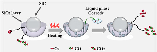 SiC(s) + O2(glass) → SiO2(glass)+ CO(g)