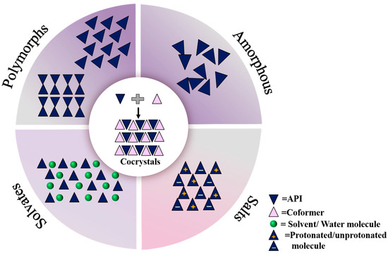 The solid state of the drug can directly affect the physicochemical properties, bioavailability, safety, and efficacy of the drug, and its types mainly include amorphous state, single-component polycrystalline, hydrate, solvate, salt, and cocrystal [1].