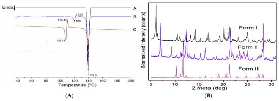Characteristics of EFV polymorphs by (A) thermogram DSC and (B) diffractogram of PXRD [22].