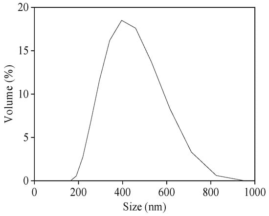 As shown in Figure 5, the size of the powder nucleating agents was about 421.1 nm, verifying their nanoscale dimensions. The steric hindrance effect of the PCE template was instrumental in enhancing seed dispersion and reducing particle size. This nanoscale size facilitated the provision of additional nucleation sites, accelerating the cement hydration process.