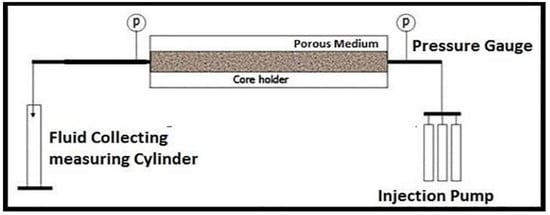 Sand-pack core flooding experimental set-up [43]. Reprinted/adapted with permission from Ref. [5932811268560]. 19 December 2024, copyright Results in Physics, Elsevier.