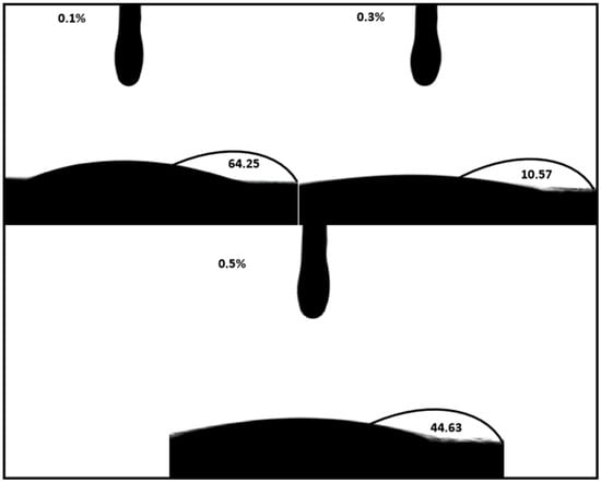 The diagram of the contact angle result of BaTiO3 at different concentrations of Nanofluids.