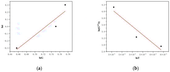 Figure 7. Fitting of grain growth index n (a), and growth activation energy Q (b).