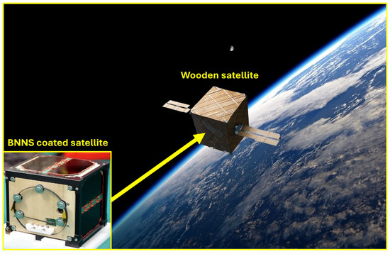 Prospective application of binder-free BNNS coatings for wooden satellite.
