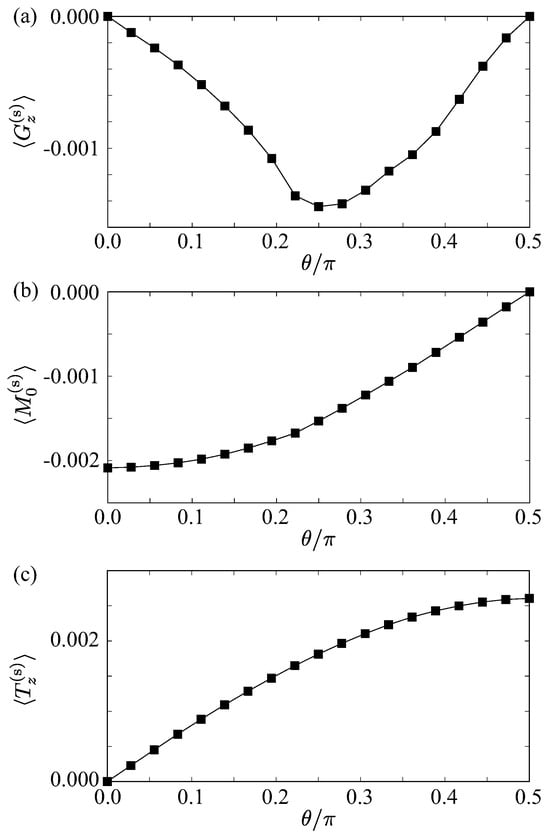 dependence of the expectation values of (a) the electric toroidal dipole , (b) the magnetic monopole , and (c) the magnetic toroidal dipole .