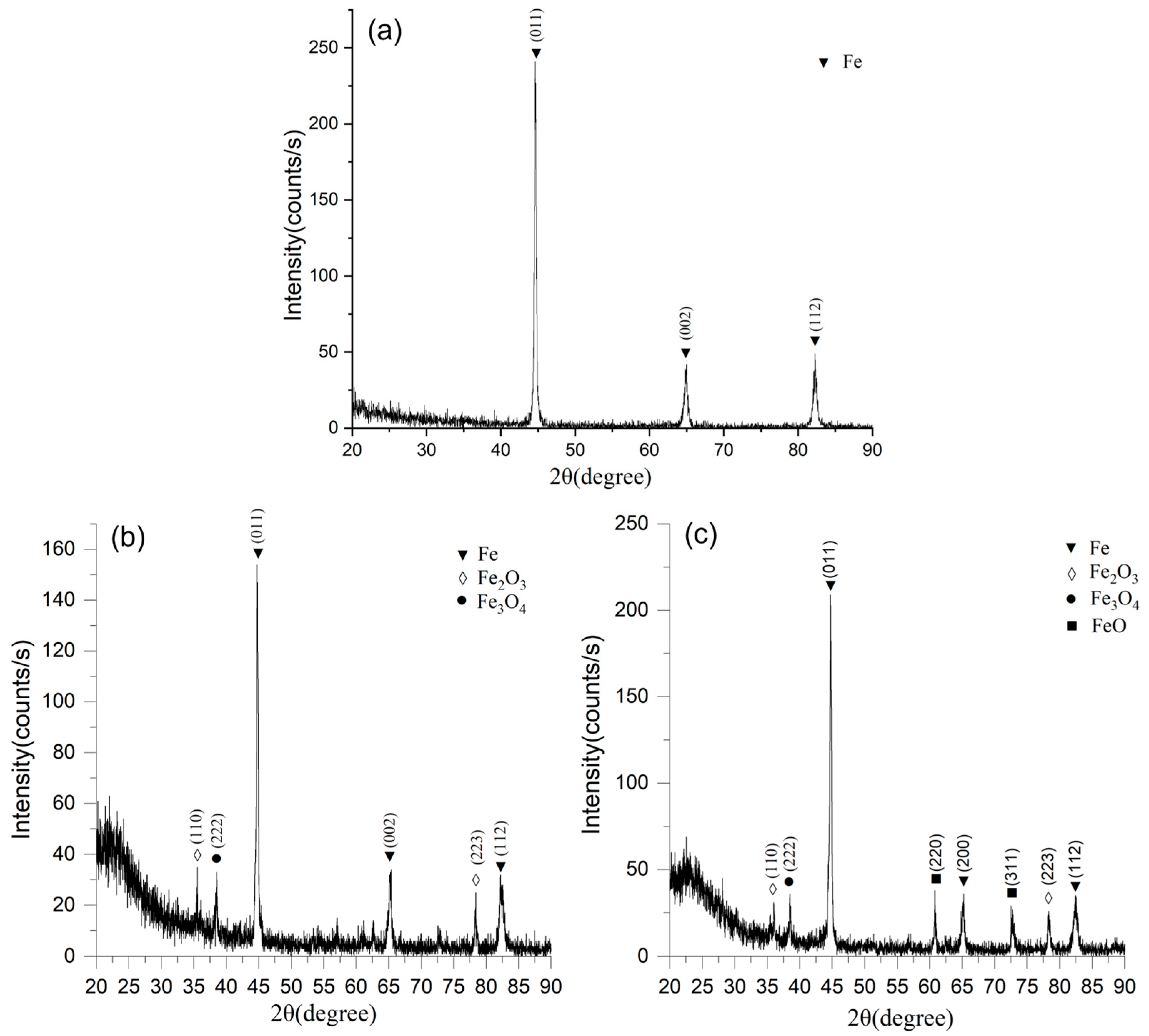 35]. X-ray diffraction (XRD) and energy-dispersive X-ray spectroscopy (EDS) demonstrate the possibility of forming not only pure α-Fe but also various oxide (Fe