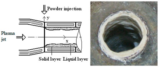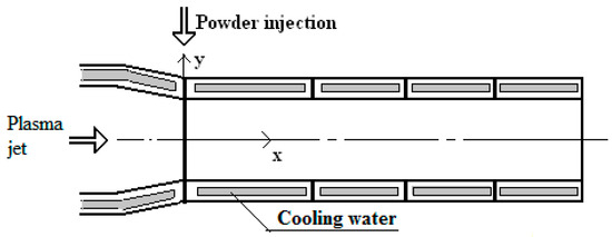 The range of applications of atmospheric pressure thermal plasma technology is constantly expanding, as it is a novel technique for the manufacture of newer and more advanced materials, because thermal plasma technology provides high-power density, high temperature, and high-velocity gas flow. Traditional applications of thermal plasma devices (plasma torches) are cutting, welding, particle spheroidization, waste destruction, and other applications in plasma processing and metallurgical engineering [1,2,3,4]. Among these, plasma spraying has been the most widely studied. In this process, fine particles are injected into a plasma jet, rapidly heated and often melted before being deposited on a substrate to form a dense coating [5]. The fundamentals of this process have been extensively described in the literature and are now summarized in several handbooks, such as [6,7].